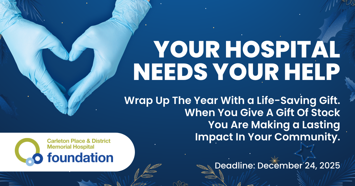 By transferring a gift of stock or securities today, you can advance exceptional healthcare at the Carleton Place & District Memorial Hospital and benefit from valuable tax savings.